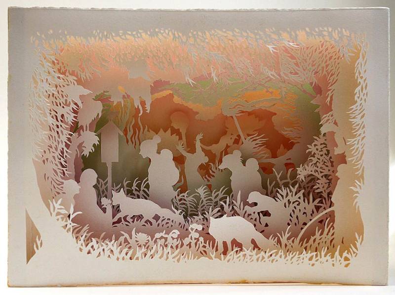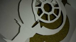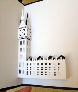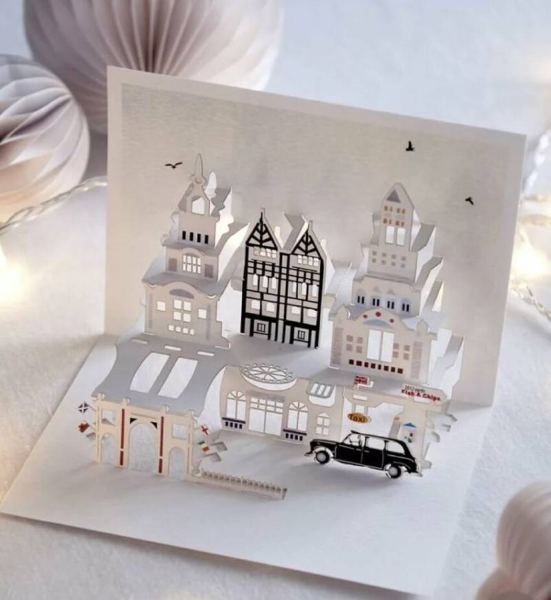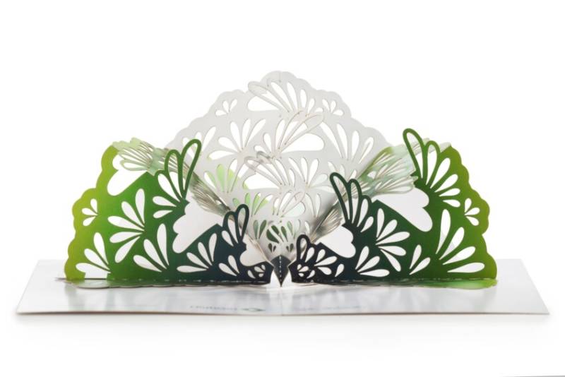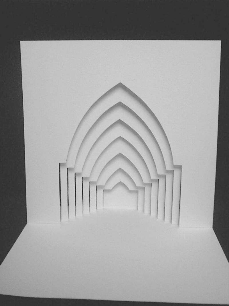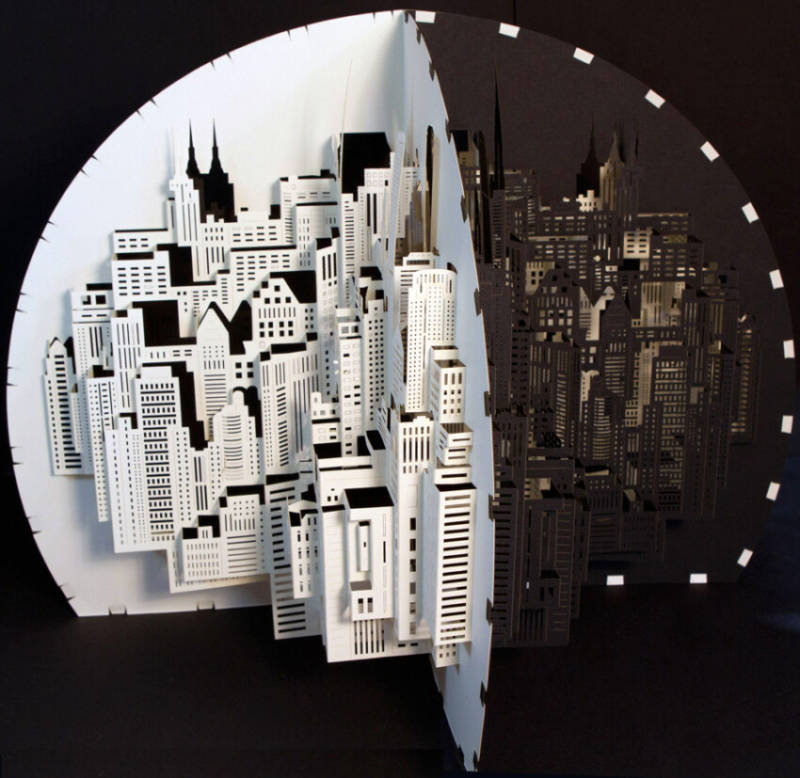 Това е кратка формулировка на техниката киригами. Буквалният превод от японски означава "рязане на хартия". Изрязана и сгъната по определен начин, хартията ще създаде триизмерна картина, сцена или цял архитектурен модел. И всичко това от един лист хартия!