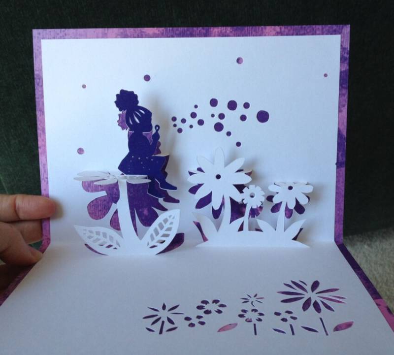Но по-интересни са сгъваемите книги и обемните поздравителни картички. Когато отворите тези картички или книжки, изработени в стил "pop-up", изрязаните форми се изправят и пред нас се разкриват сцени, растат цветя, герои и дворци. И как иначе, защото от английски език "pop-up" се превежда като "появявам се неочаквано" или "изскачам". Можете също така да създадете ефект на движение. Наистина, като в приказка.