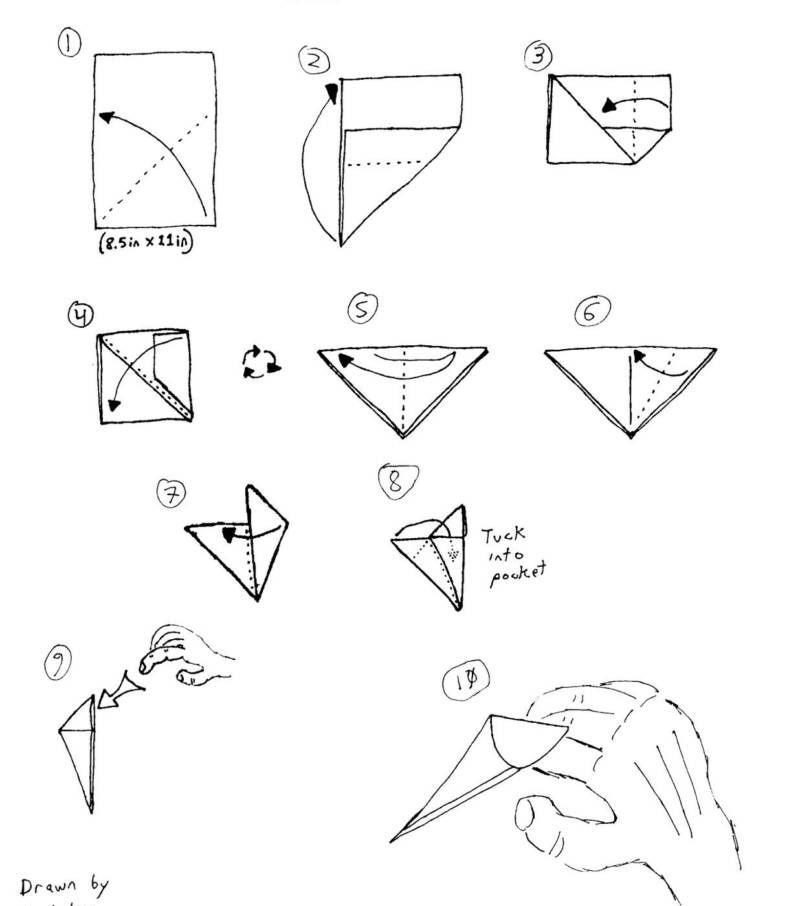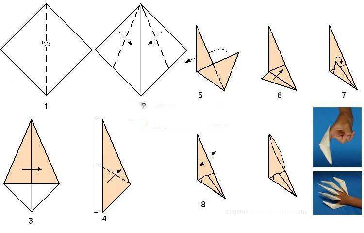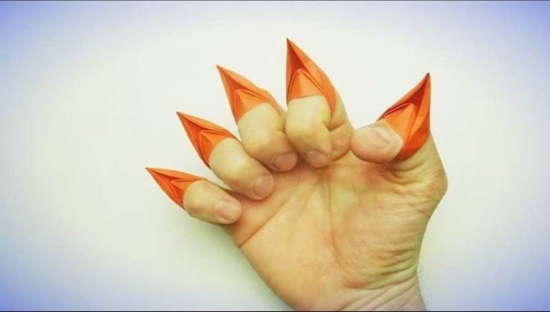 Техниката на оригами ви позволява да разширите обхвата на хартиените нокти. Може да бъде: