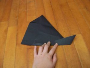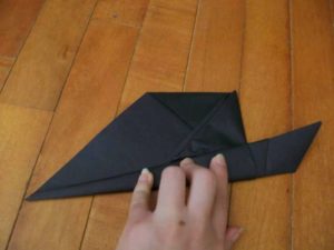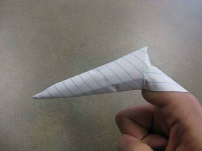 - Отново сгънете гънките от двете страни, за да се получи парче, което прилича на връх на копие.