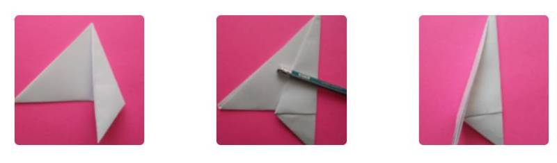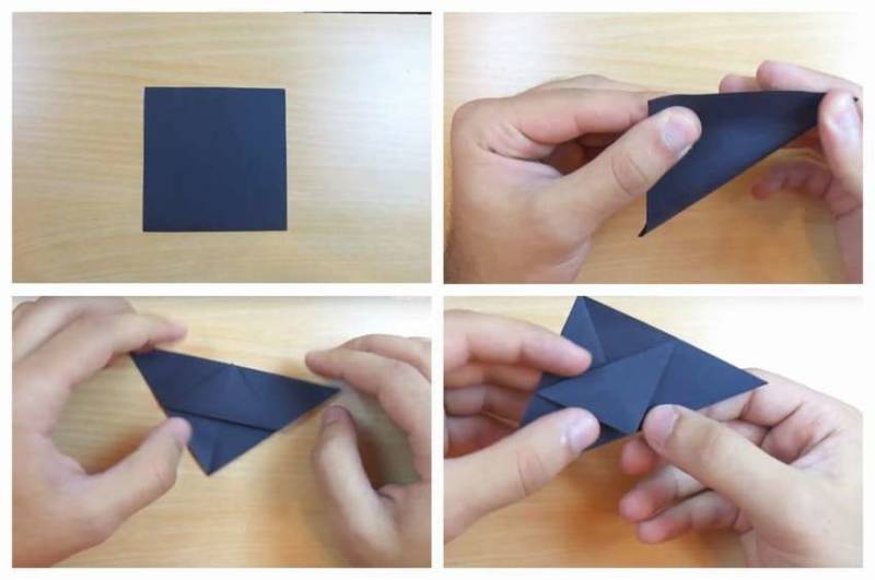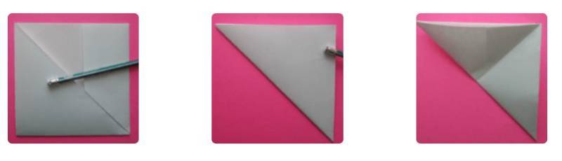 - Полученият квадрат трябва да се огъне по диагонал (наполовина).