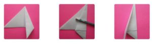 - След това процедирайте по следния начин, за да получите друг триъгълник. Към основната линия на страната на сгъване, имаща формата на триъгълник, се огъва в средата.