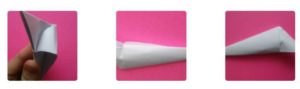 - Внимателно увийте с него двете страни на триъгълника. Малко парче хартия, прибрано в продукта.