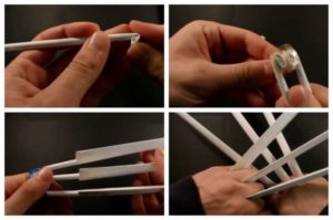- Свържете получения тризъбец от съединените пръчки със стрелките. Всяка стрелка трябва да бъде поставена на тръбичка. Отрязаните краища трябва да останат на дъното.