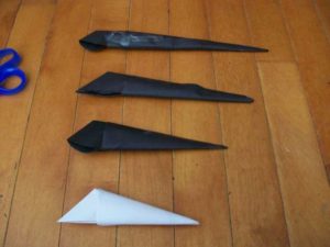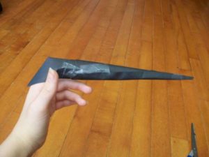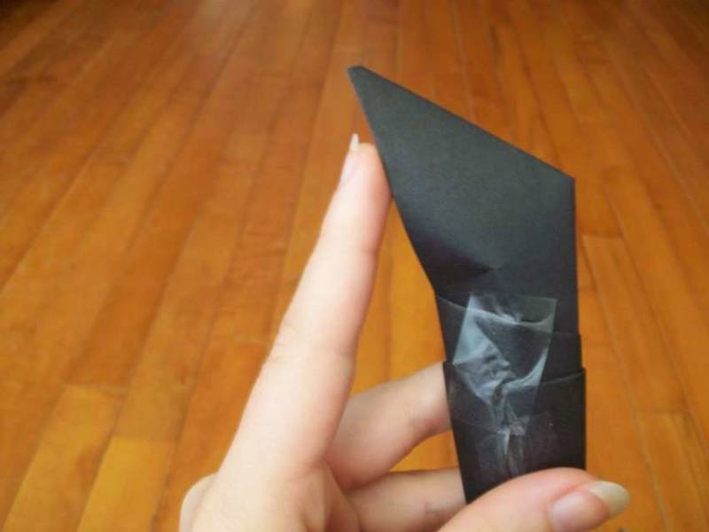 - Изрежете триъгълник и го завийте на конус. Залепете страните заедно. Оставете да изсъхне.