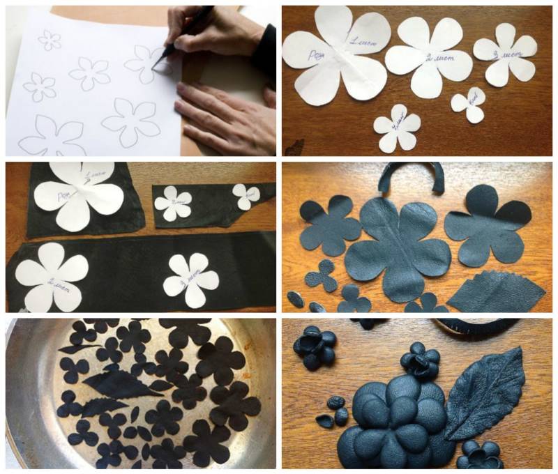 - От по-дебело парче кожа изрежете стълбче и тичинки. Можете да използвате и въдица или тънка тел.