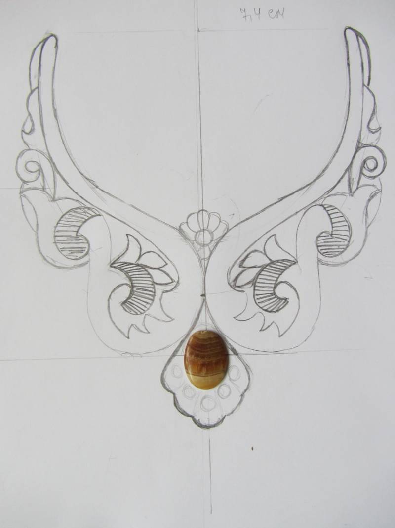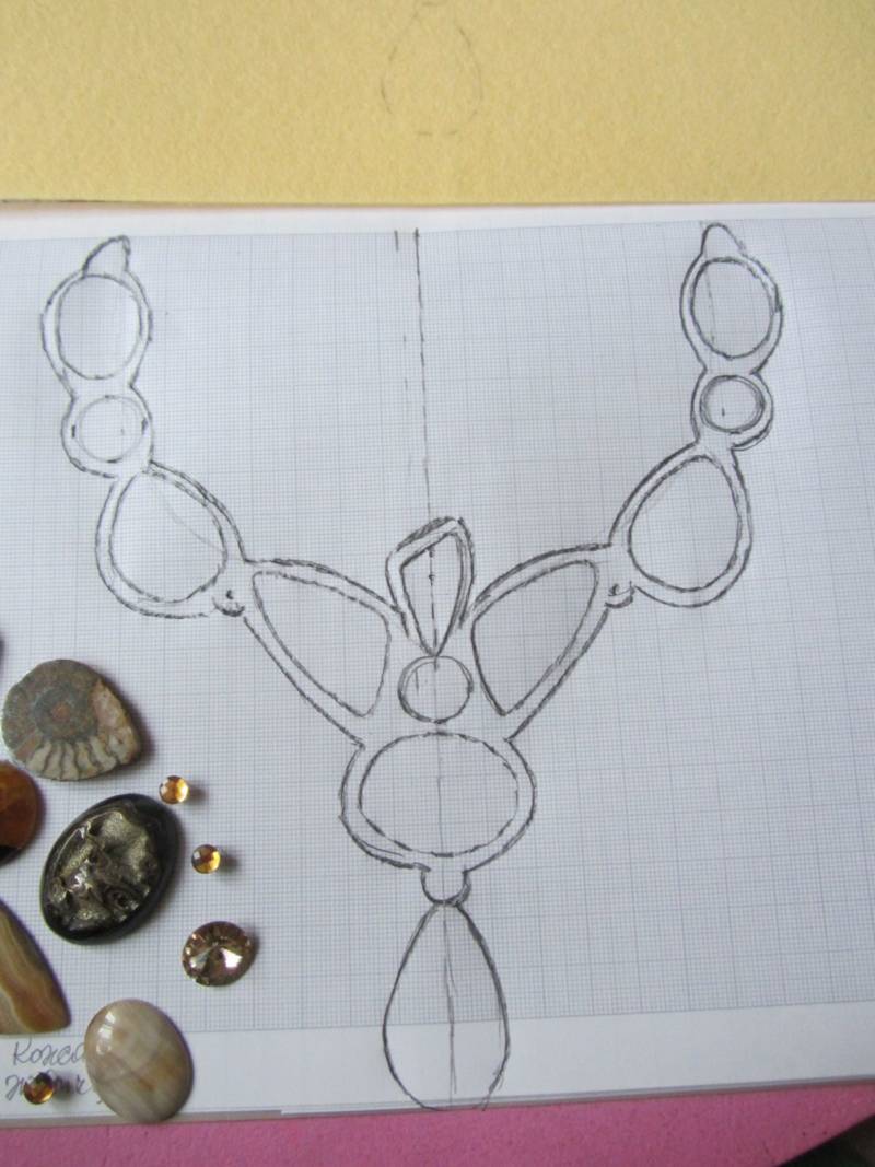 След като сте определили как точно да изглежда колието, трябва да направите скица. Можете да направите това с помощта на обикновен лист хартия или компютърна програма. Основното нещо е да направите грамотен образ, към който ще се обръщате по време на работа, за да не допускате грешки.