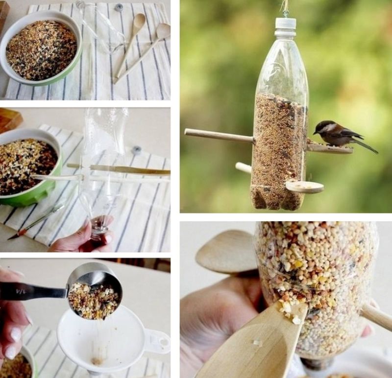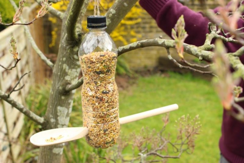 Най-лесният начин да направите хранилка за птици е с пластмасова бутилка.