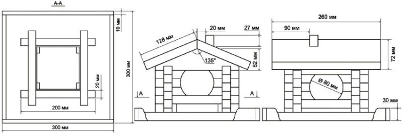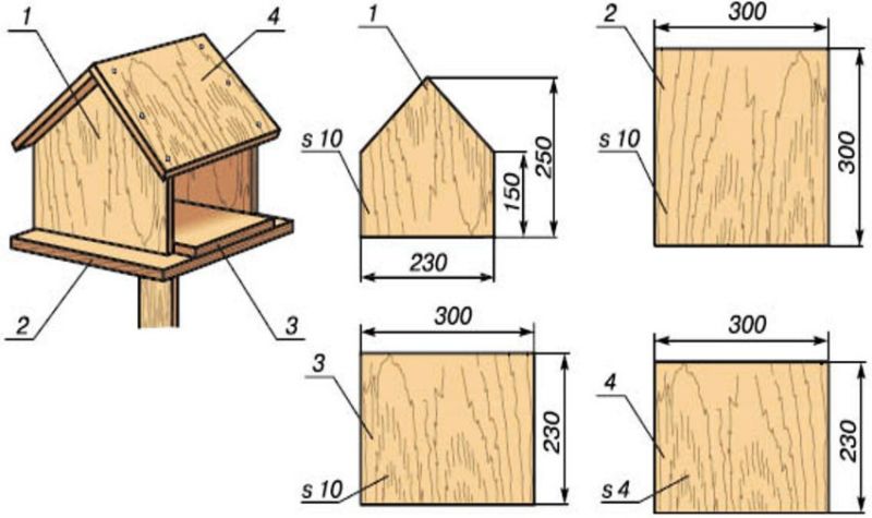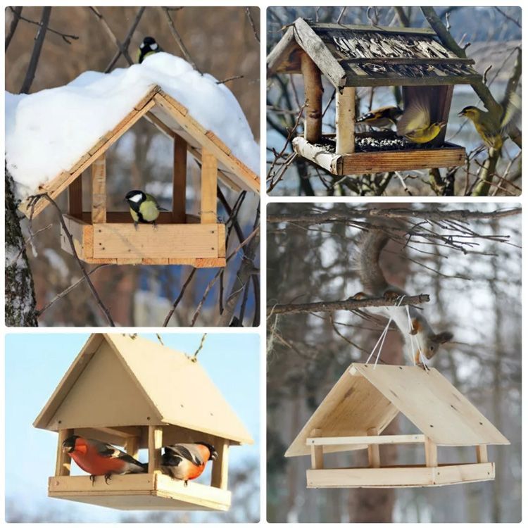 Класическата дървена хранилка за птици е отворена къща. Тази конструкция се характеризира с платформа за зърно или друг вид храна, двускатен покрив и четири опорни стълба. Инструкции за занаятчията относно работата, която трябва да се извърши: