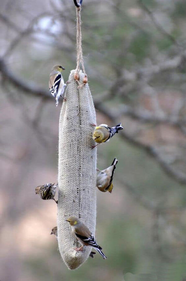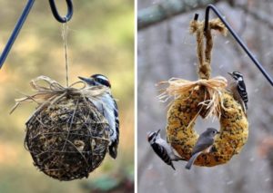 - За изработването на големи висящи хранилки за птици са необходими дървени летви или фина мрежа.