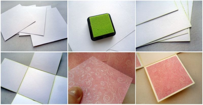 - Картонен лист с размер А4 се сгъва в единия ъгъл и излишната лента се отрязва, за да се получи квадрат.