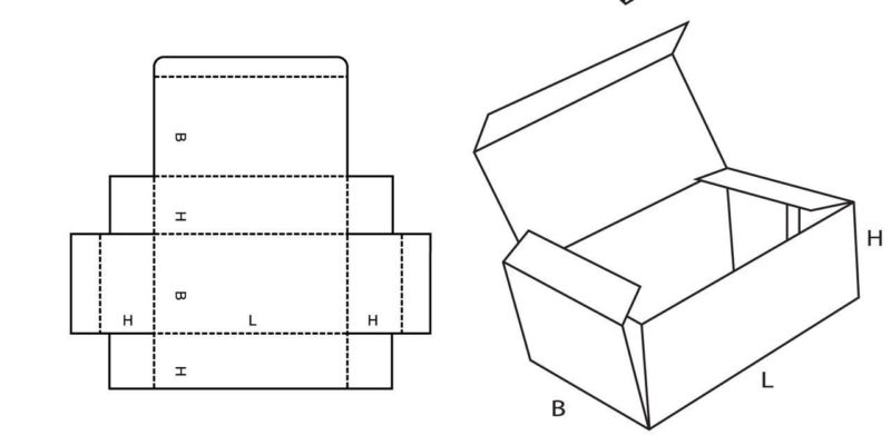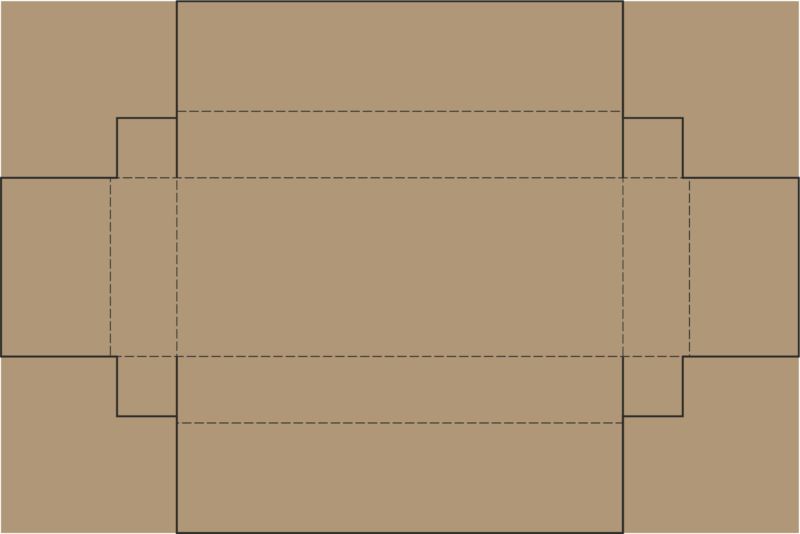 За да си направите правоъгълна кутия за съхранение, първо трябва да нарисувате схема на лист или директно върху картон, а след това да изрежете по маркираните линии: