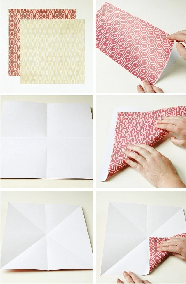 - Огънете четирите ъгъла към този център според принципа за сгъване на плик.