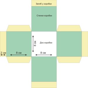 - Изрежете нарисувания шаблон и започнете да сглобявате кутията. Ако картонът е много дебел, трябва да направите малки вдлъбнатини в линиите на сгъване, за да го сгънете по-добре.
