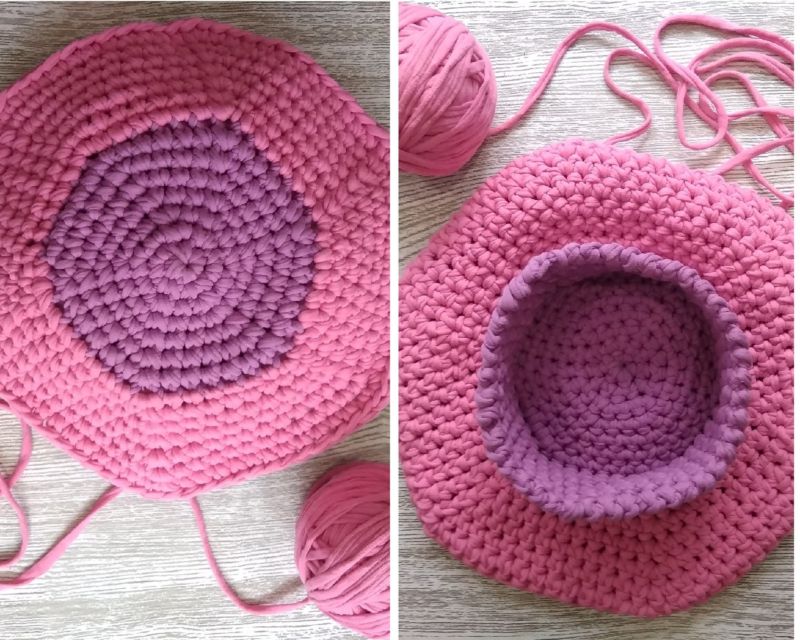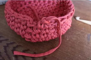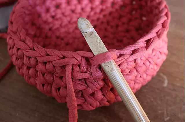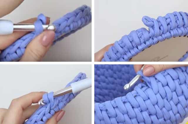 След като дъното достигне необходимия размер, изплетете стените на продукта. Не е необходима допълнителна работа и работата продължава със същата прежда.