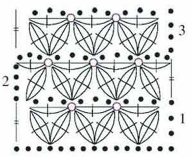 Моделът се използва за плетене на дъното, стените и други елементи. Други модели за плетене на една кука могат да се използват в комбинация с кърлежи.