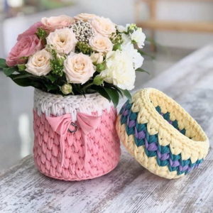 От плетената прежда може да се изплетат много красиви и полезни неща. Най-популярни сред различните варианти са кошниците. Използват се за съхранение, както и за вътрешна декорация.