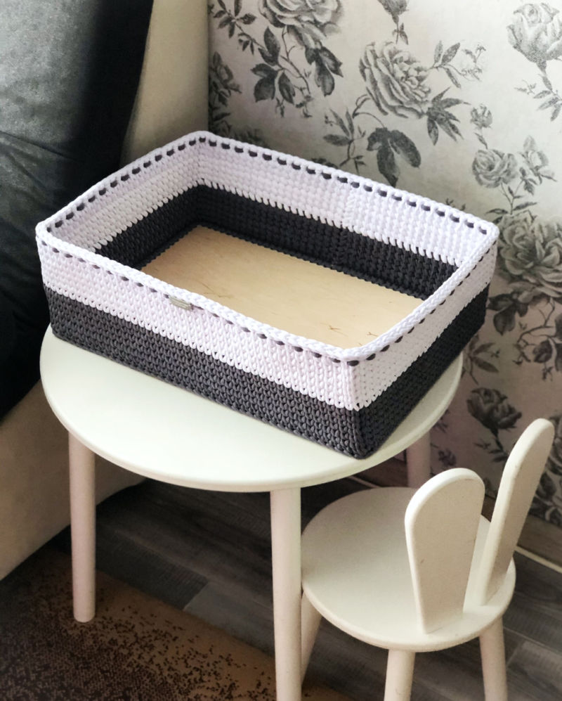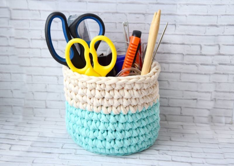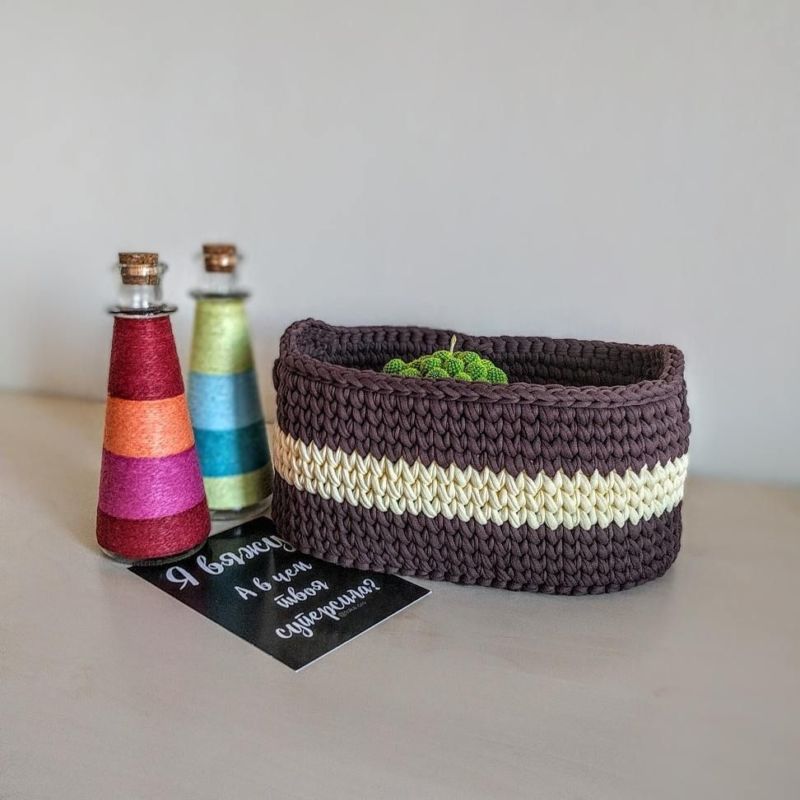 Кошницата за трикотаж се превърна в популярен продукт. Те са удобни, с красив интериор и функционални елементи. Няма нищо сложно в плетенето им. Начинаещите не бива да се страхуват да се заемат с тази работа, всичко със сигурност ще се получи.