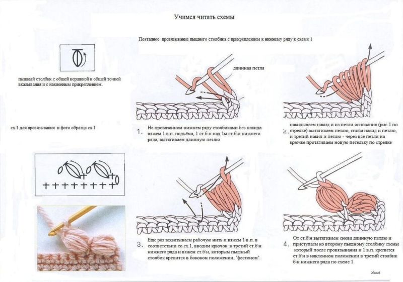 След това пристъпете към плетене на самия продукт. Дъното се създава стриктно по схемата. За по-плътна основа е най-добре да използвате плоски бримки. Преминете към плетене на стените, след което преминете към модела "пуканки".