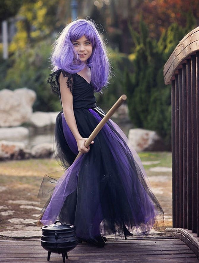Роклята на вещицата може да бъде празнично елегантна: изработена от пищен черен тюл с много дантели, волани, панделки и черни пайети. Или пък може да изглежда загадъчно стар, изтъркан и раздърпан под формата на сива качулка.