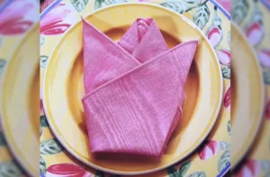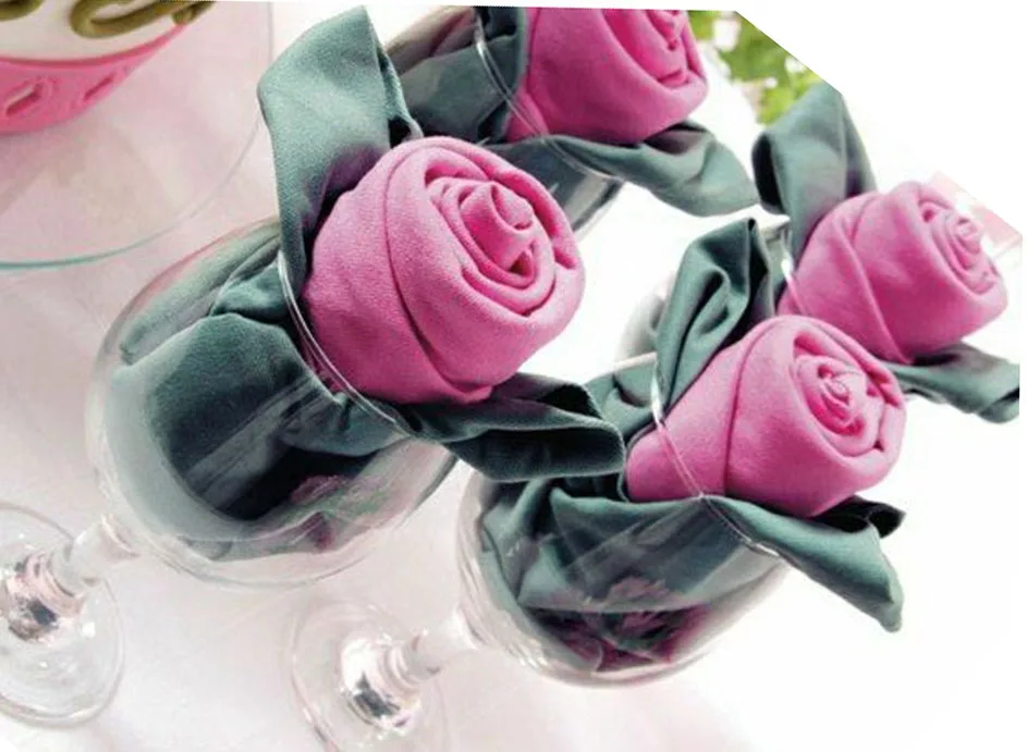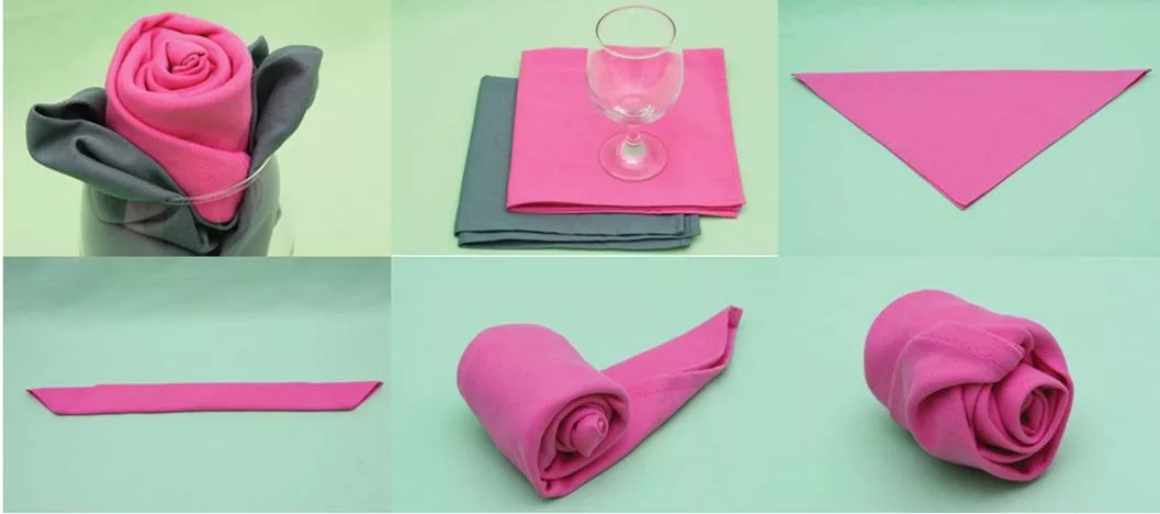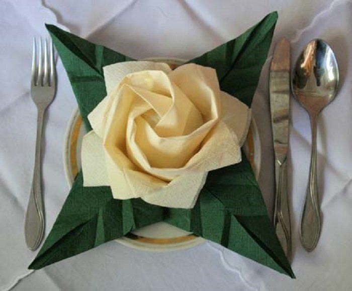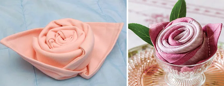 Изненадайте гостите си със салфетка във формата на роза, поставена на масата. Изработката на всяко цвете ще отнеме не повече от 3-5 минути.