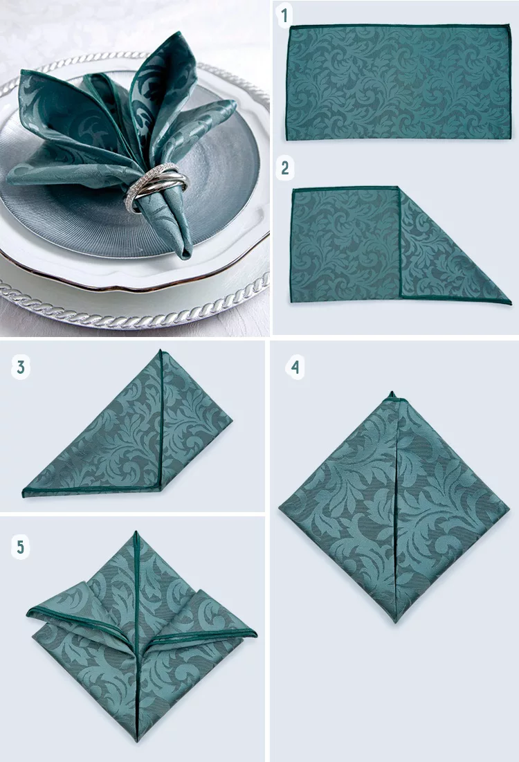 Как да сгъваме салфетки за украса: тънкостите на декорацията на празничната маса (64 снимки)