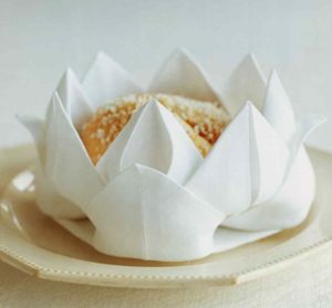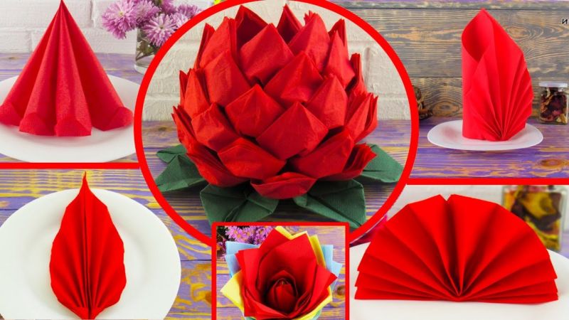 Цветето лотос ще изглежда интересно, ако за създаването му се използва деликатна цветна салфетка. Тази уникална декорация се използва за специални поводи като сватбени тържества или годишнини.