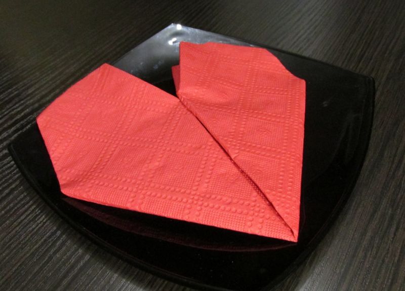 - Късата страна на първата салфетка се поставя хоризонтално, а дългата страна се поставя под ъгъл 45 градуса надясно.