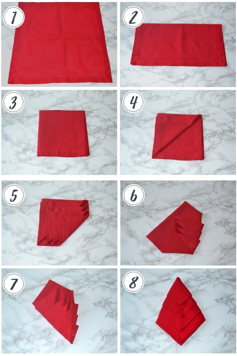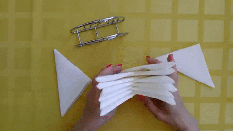 - Без да разгъвате салфетките, сгънете ги на триъгълник.