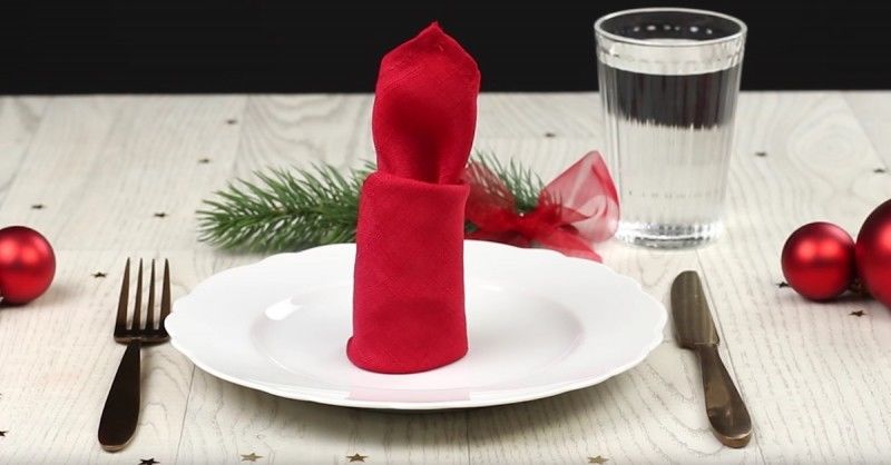 Усукването на салфетка със свещ е много лесно. Дори едно дете може да се справи с такава задача.