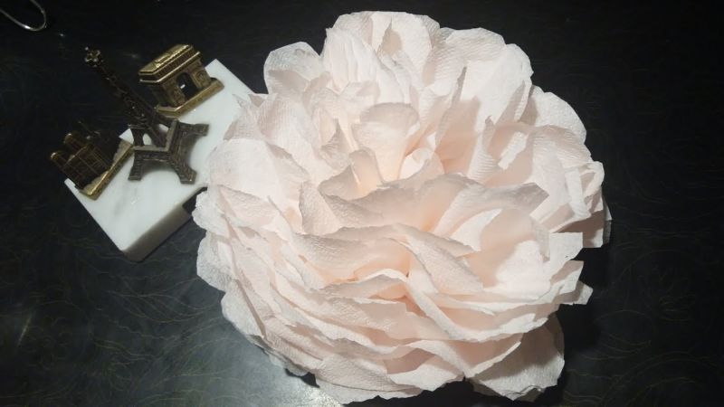Уникалната схема за усукване на салфетки ще доведе до необичайно цвете, което прилича на божур.