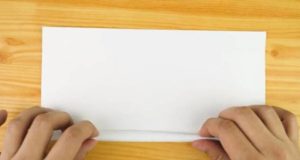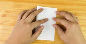 - Хартията се сгъва внимателно наполовина, за да се получи равен правоъгълник.