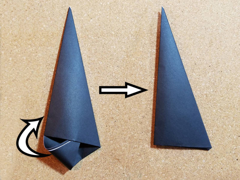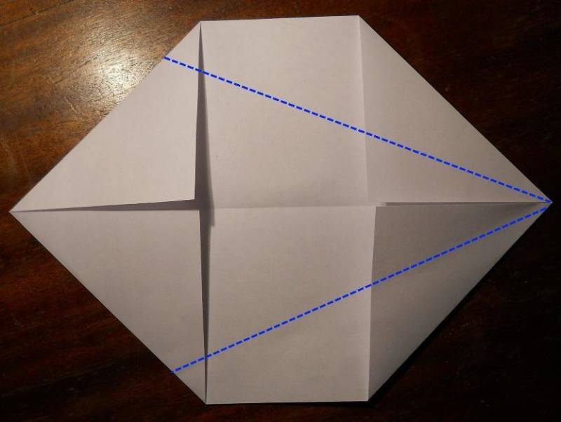 - Върховете на парчетата също се сгъват до централната точка на хартията.