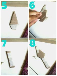 - Изрежете клиновидни парчета от картон. Дължината е не повече от петнадесет сантиметра.