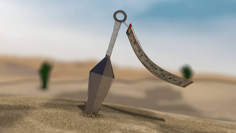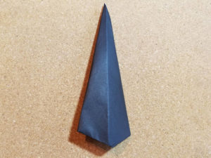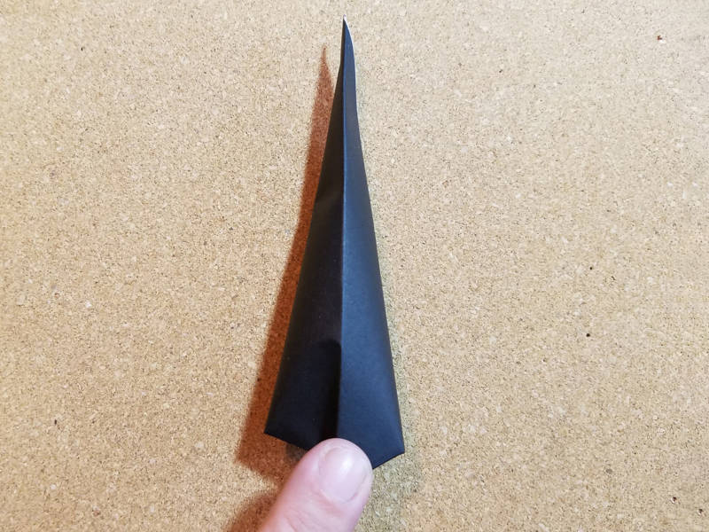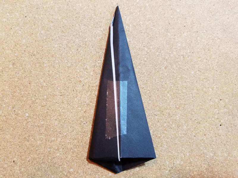 - От най-острия ъгъл краищата се сгъват заедно и се залепват с тиксо. Резултатът е красиво и остро острие на кунай.