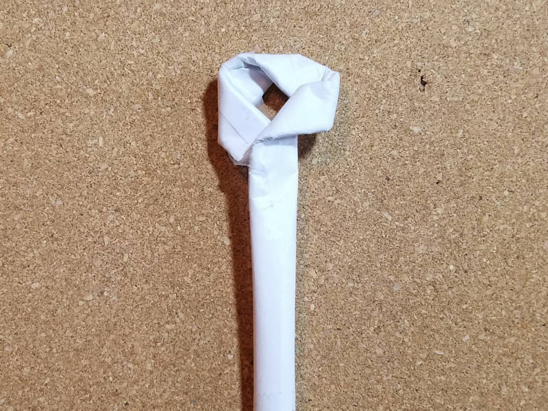 - Вътрешността на кунай се запълва с навита на руло хартия, а останалите краища на хартията се прикрепят, като също се залепват с лепило.