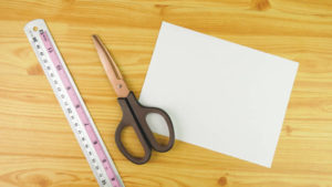 - Хартията се изрязва по линията на прегъване с остра ножица, за да се получат няколко малки правоъгълника.