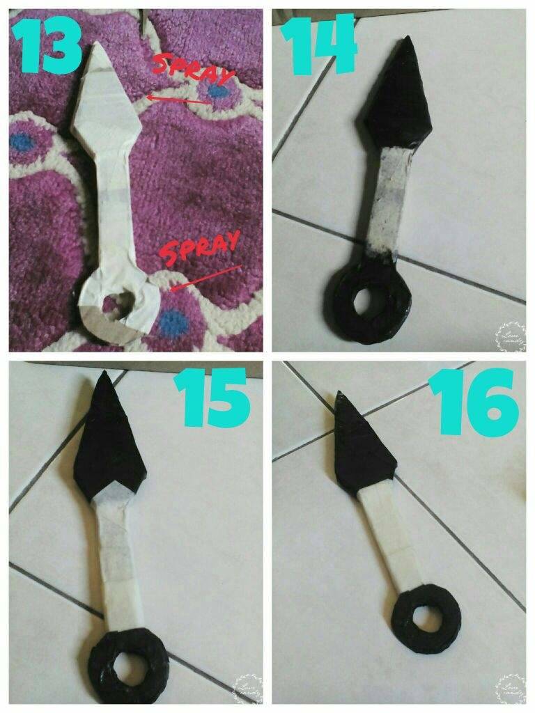 - От хартията се изработва здрава черна халка, която се поставя върху дръжката на кунай.