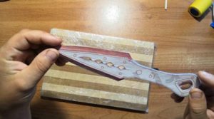 - Ако искате да направите инструмент с реален размер, трябва да направите някои измервания: прецизно измерете дължината на предмишницата си и дължината на пръстите си, защото подходящата дължина за професионален кунай е дължината на предмишницата ви + дължината на двата пръста, които държат инструмента.