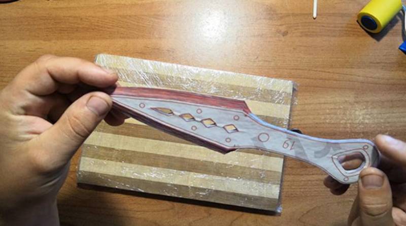 Кунай, изработен от хартия с лепило и лента, е готов!