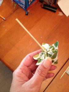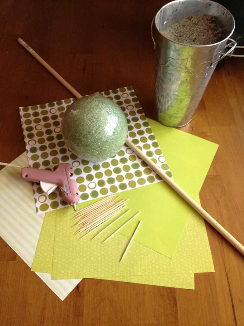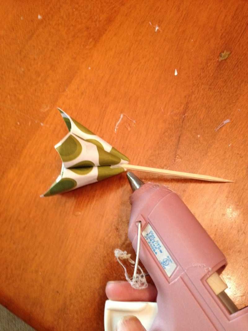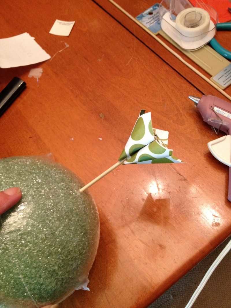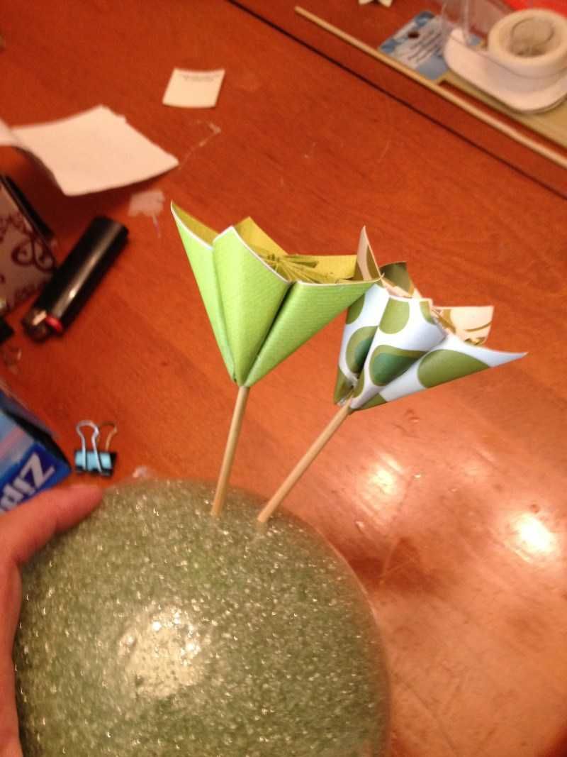 - Направете чашелист от зелена хартия и поставете пъпката в него.