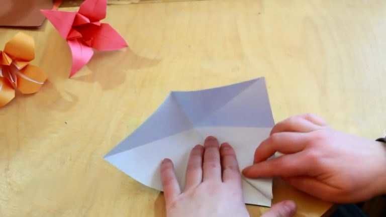 - Огънете стърчащите ъгли на разгънатите страни, първо горната, после страничните, така че да образуват права линия с основната фигура и получения ромб.