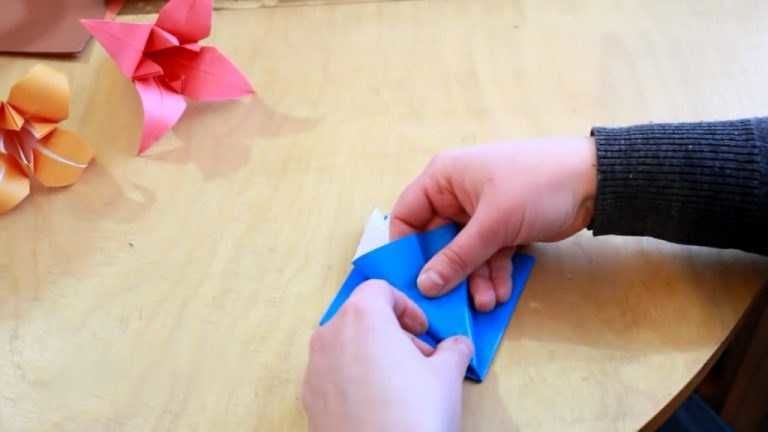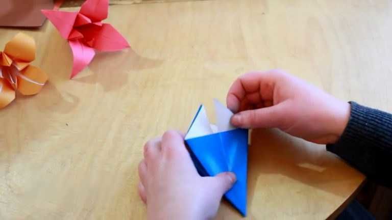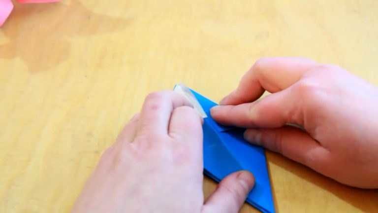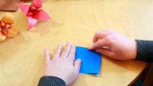 - Огънете двете страни към центъра. Получените триъгълници се слепват внимателно по контактните линии на огъване. Резултатът е венчелистче с формата на конус.