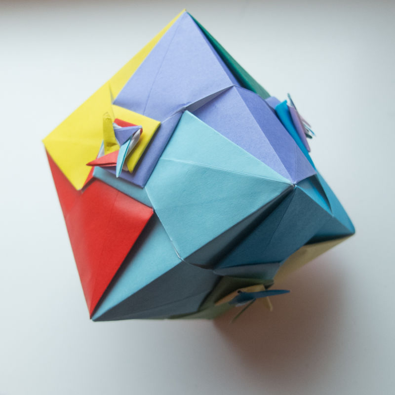 В тази версия не всички страни на модулите са залепени една за друга, а между тях има пролуки от всички страни под формата на триъгълници.