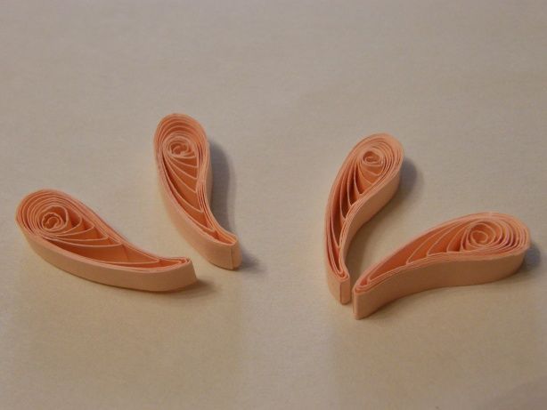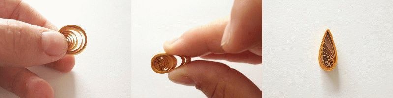 - капка, която се изработва от свободен детайл, като в единия край се притиска с пръсти, а свободният връх се залепва с лента, и се получава форма на капка;