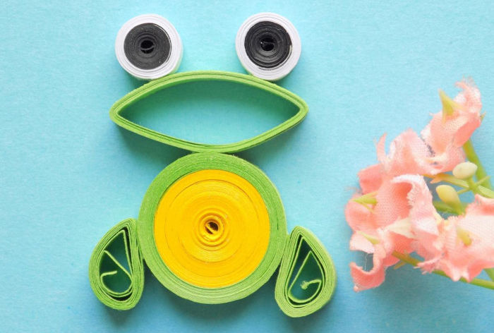 - Залепете устата на тялото, очите отгоре, а след това лапите на тялото. Нашата весела малка жаба е готова.
