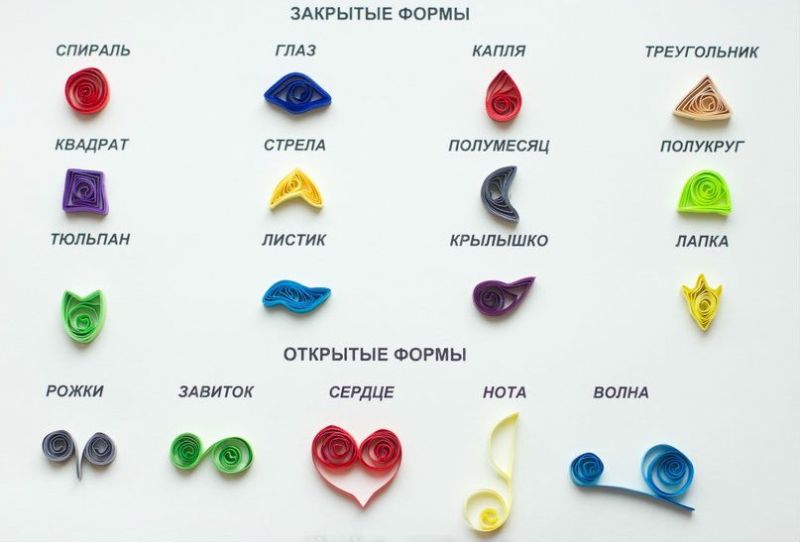 Основните фигури се основават на хартиена панделка, завита в кръг. Затворени елементи: