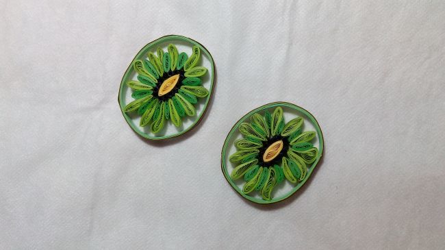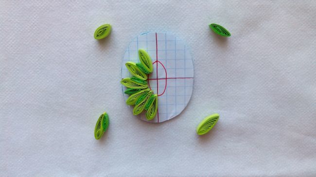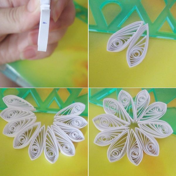 - Залепете заготовките с форма на капки една за друга в кръг, поставете средата и фиксирайте с лепило.