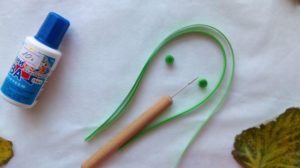 - Инструмент за усукване, може да бъде игла със счупено ухо, клечка за зъби, раздвоена в края, стига раздвоеният край да държи хартията в началото на усукването. Можете също така да използвате молив или химикалка, за да навиете панделките;