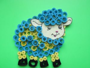 Направете рисунка на агне. Бяла, сива, синя основа. Размери 10mm, 12mm, залепете върху целия модел.